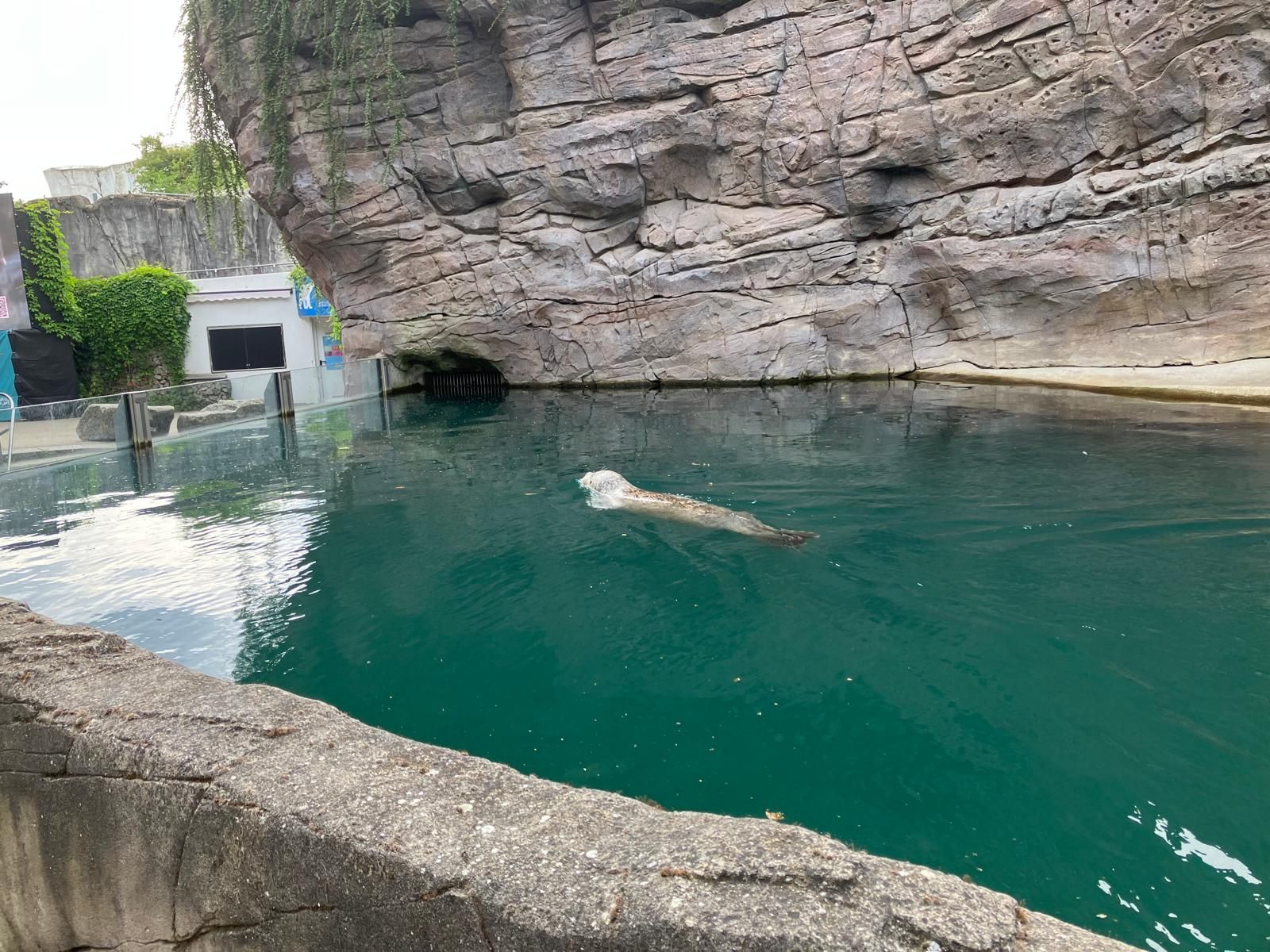 Schließlich zeigte sich der kleine Mika gemeinsam mit seiner Mutter Nuka und die beiden badeten in ihrem Wasserbecken.