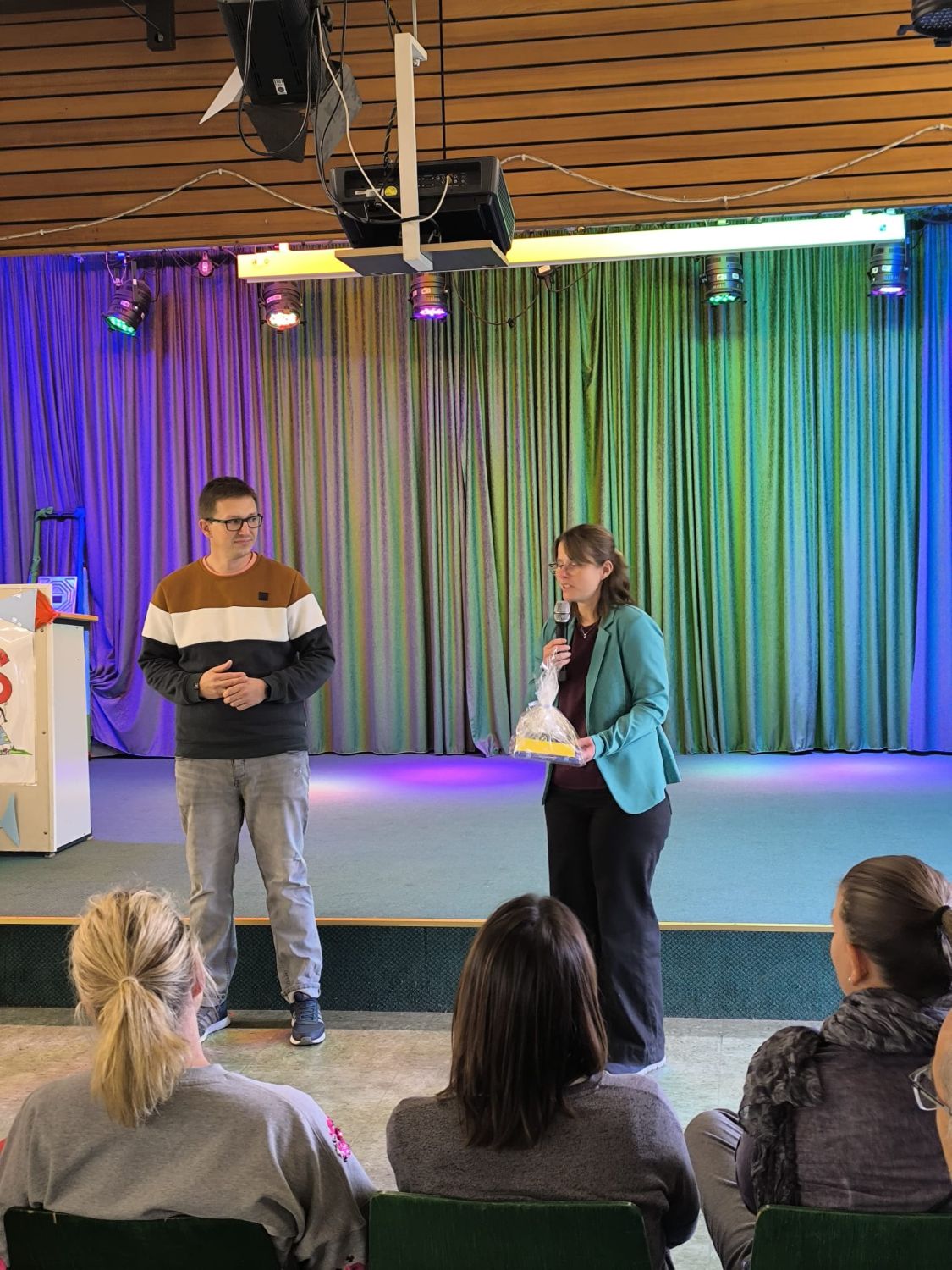 Mit einem lachenden und einem weinenden Auge verabschiedeten dich am 17.10.2025 in der Aula der Erich Kästner-Schule Herr Eheim, Frau Richter, Herr Fürniß sowie Herr Schirmer und Frau Megerle vom Förderverein. Mit einem kleinen, bunten Herbstprogramm und Liedern sorgten die Kinder der 3. und 4. Klassen, die dich noch als ihren geschätzten Hausmeister Jack kannten, für schöne Erinnerungen. Aber auch noch zahlreiche andere Kinder trugen mit Gedichten und kleinen Vorträgen zu deiner Verabschiedung bei.