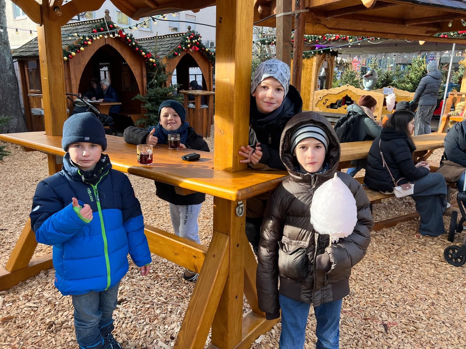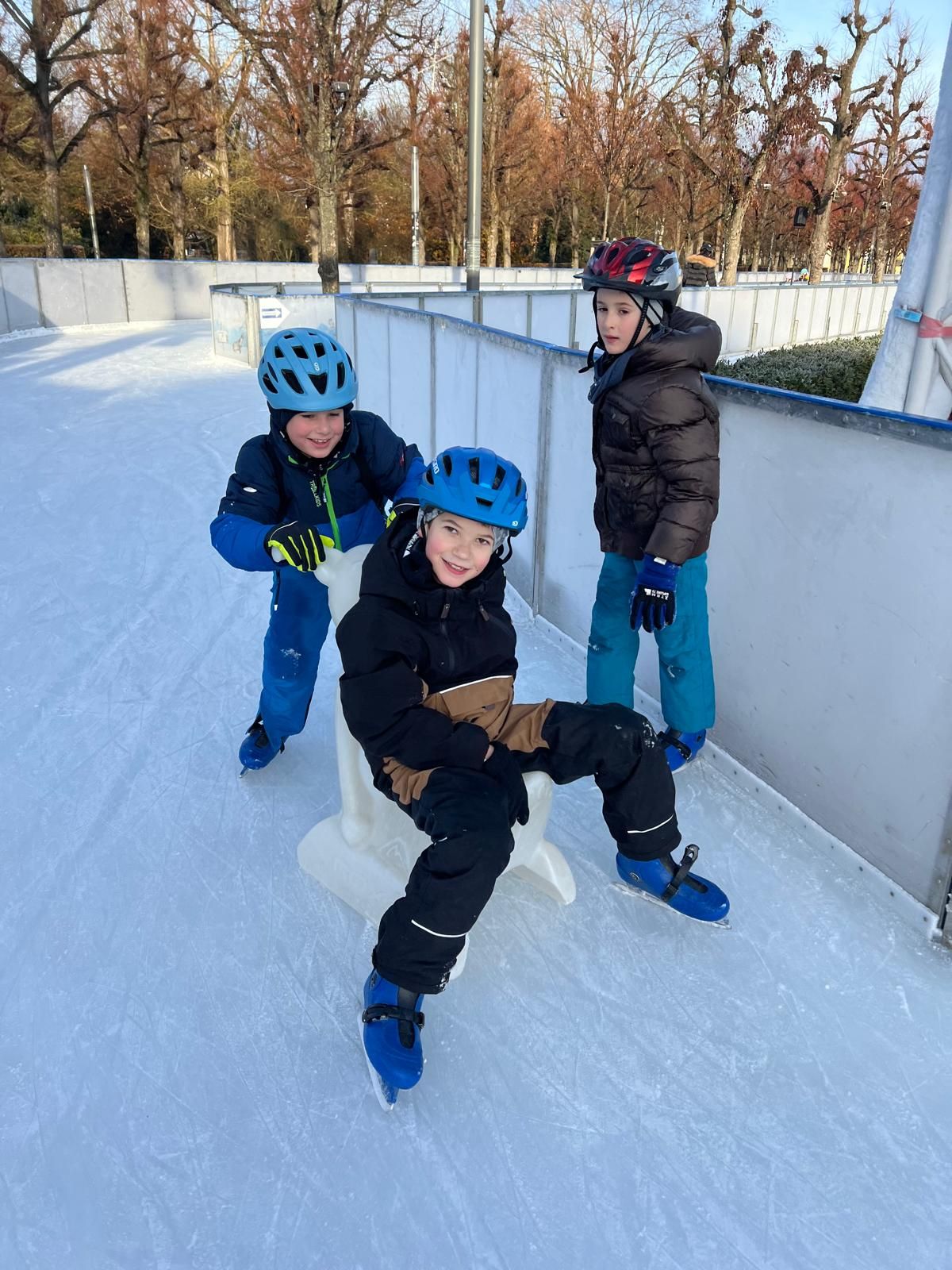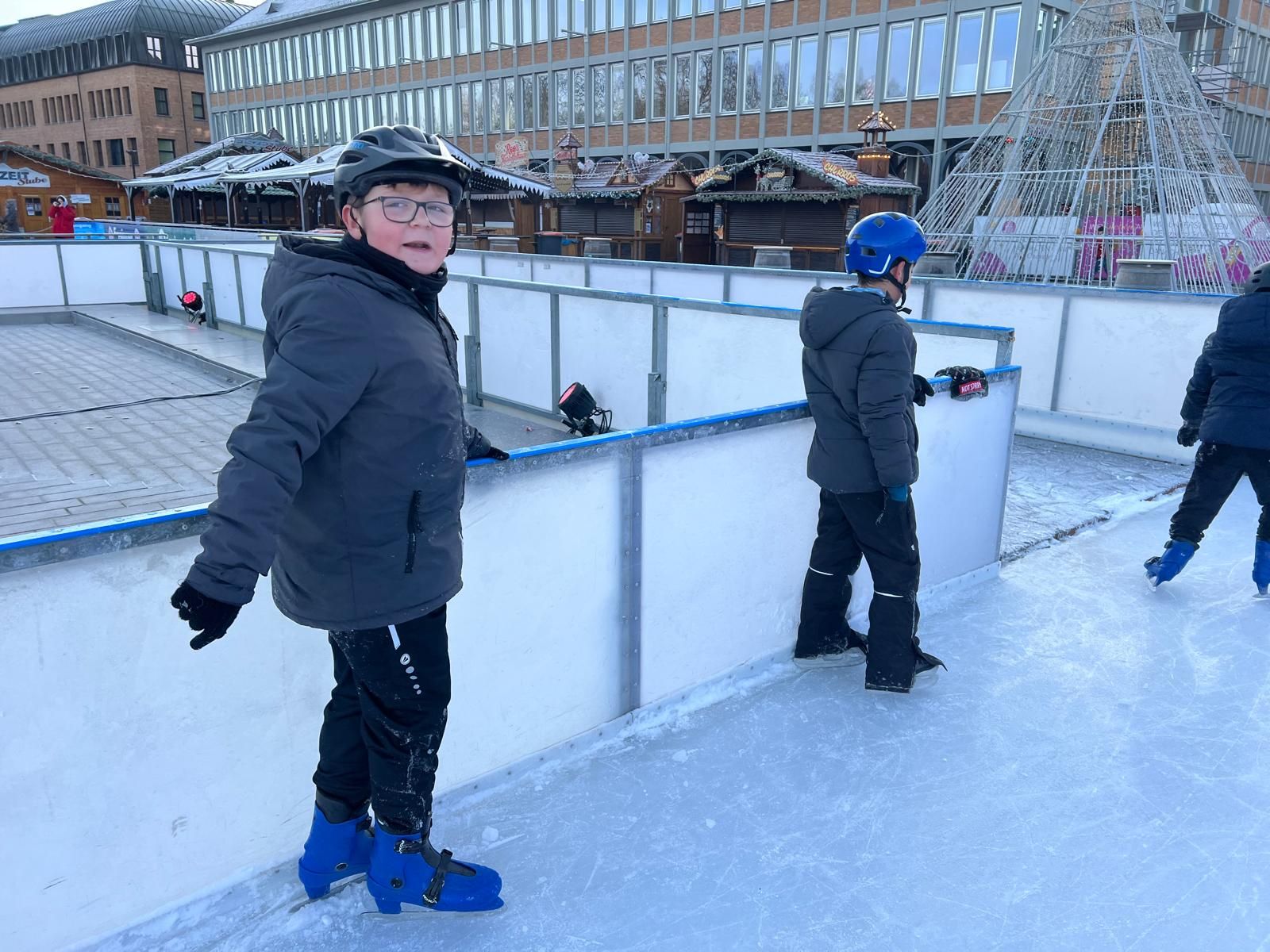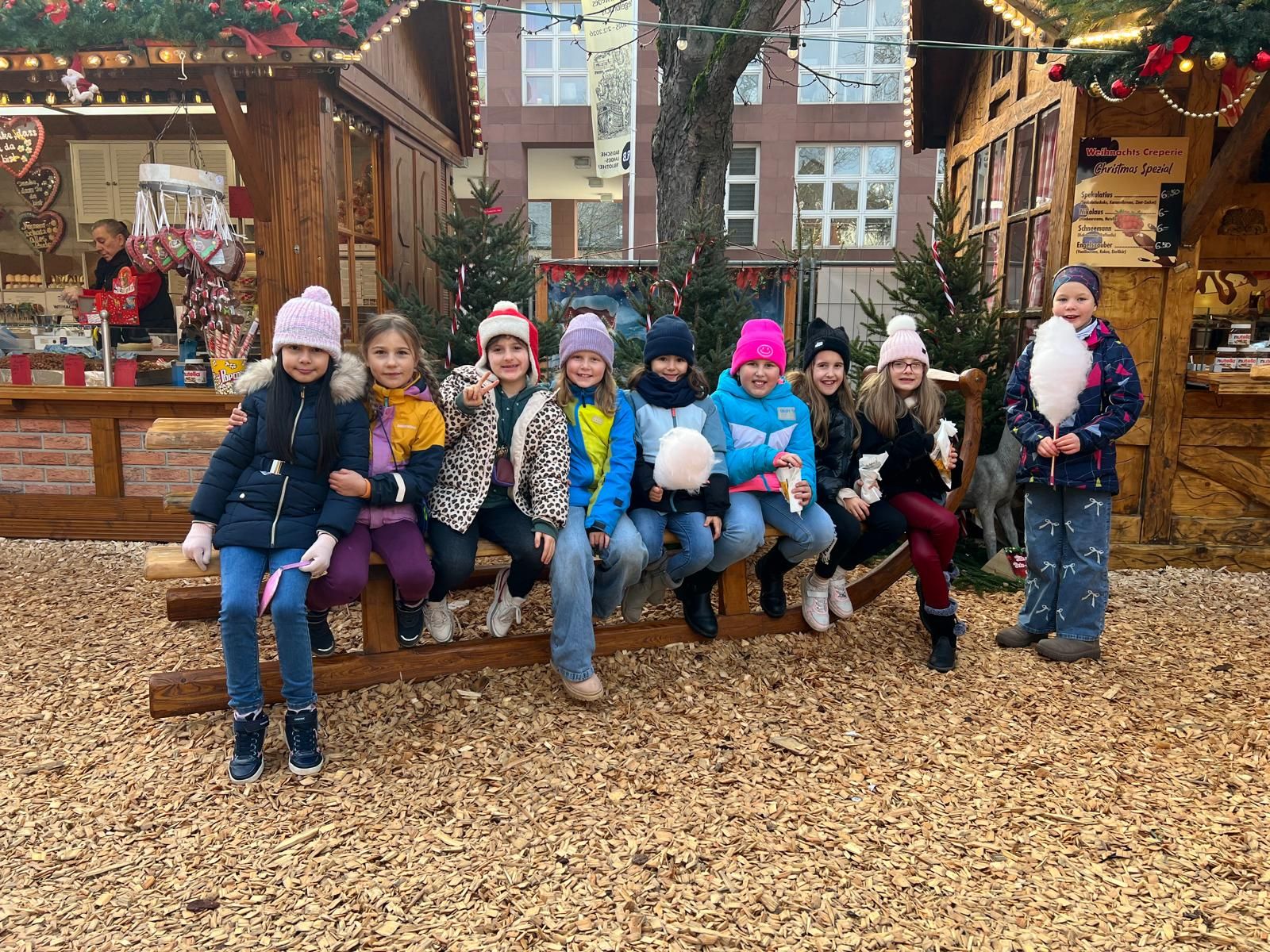 Bei herrlichem Sonnenschein begaben sich alle Kinder mutig auf das Eis und fanden schnell Sicherheit auf wackeligen Schlittschuhen. Gegenseitiges Helfen, Motivieren und dem anderen Vertrauen schenken wurden spielerisch trainiert und stärkten so das „Wir“-Gefühl. Aus manchem ungeübten Fahrer wurde so ein rasanter Kufengleiter. Glücklich über ihre gelungenen Fahrkünste besuchte dann die Klasse noch den Kinderweihnachtsmarkt vor der Stephanskirche. So manches Kind, hungrig geworden durch zahlreiche Pirouetten und Wettläufe auf dem Eis, verspeiste noch so manche Leckerei.