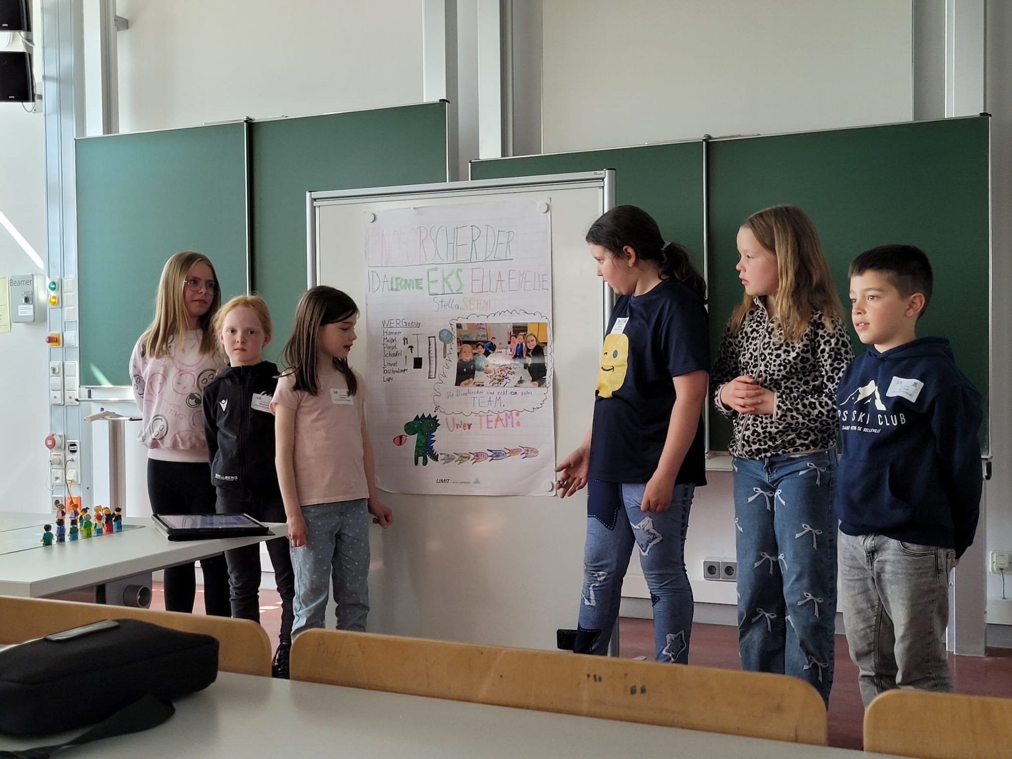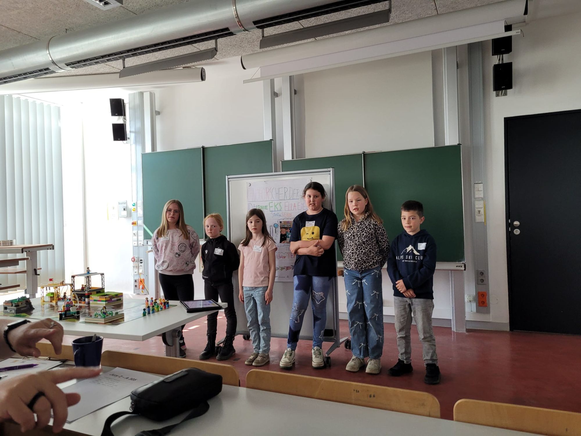 Mit großer Begeisterung stellten die Kinder ihr selbst gestaltetes Plakat sowie ihre LEGO Modelle vor. Trotz anfänglicher Aufregung meisterten beide Teams ihre Präsentationen souverän und zeigten, wie viel Wissen, Teamarbeit und Kreativität in ihren Projekten steckt.