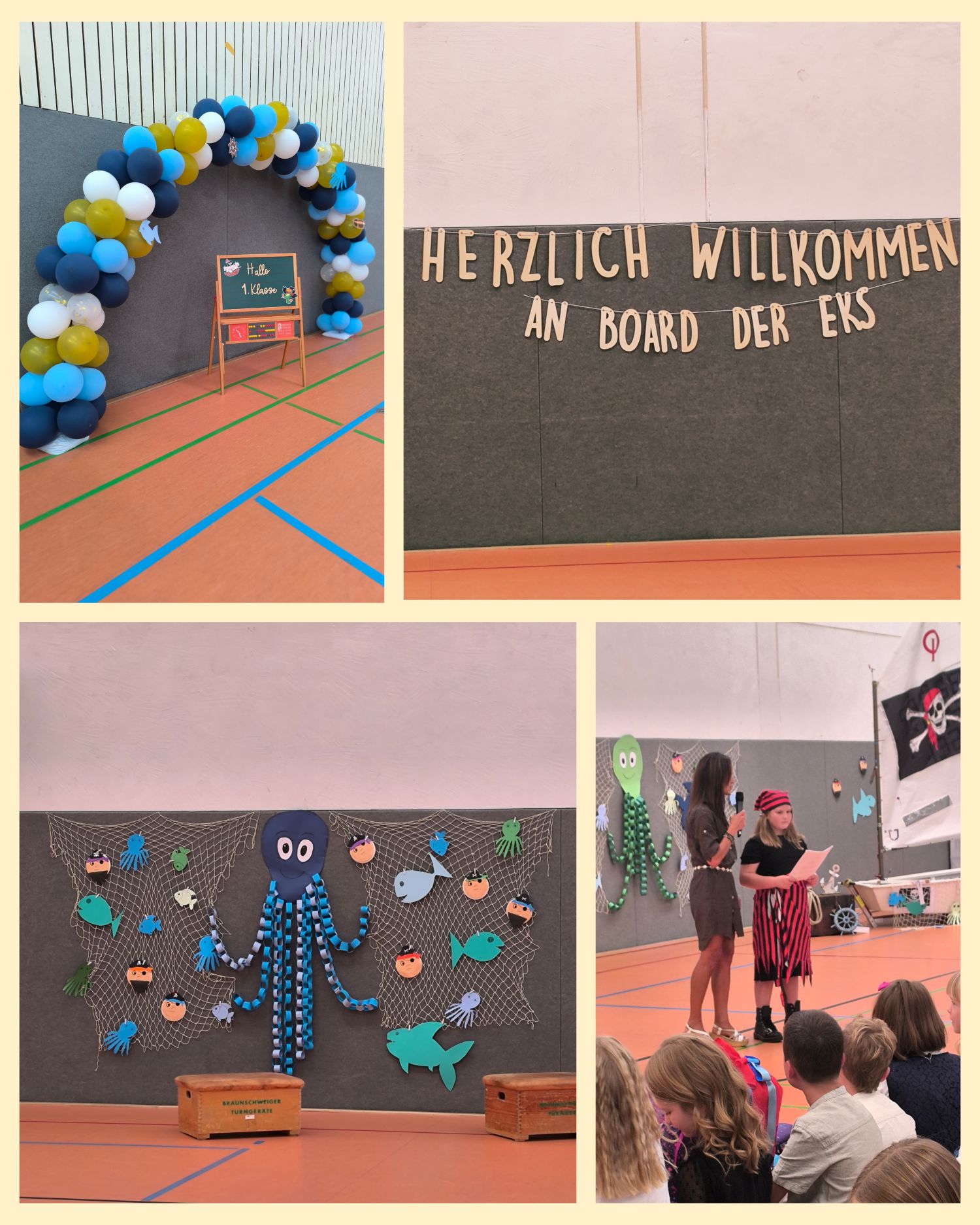 Am 18.09.2025 war es endlich soweit: Die Erich Kästner Schule hieß ihre neuen Erstklässlerinnen und Erstklässler herzlich willkommen. Unter dem Motto „Segel setzen – Leinen los!“ starteten drei erste Klassen in ihr großes Schulabenteuer. Rund 500 Gäste versammelten sich in der vollbesetzten EKS-Halle, um diesen besonderen Tag gemeinsam zu feiern.