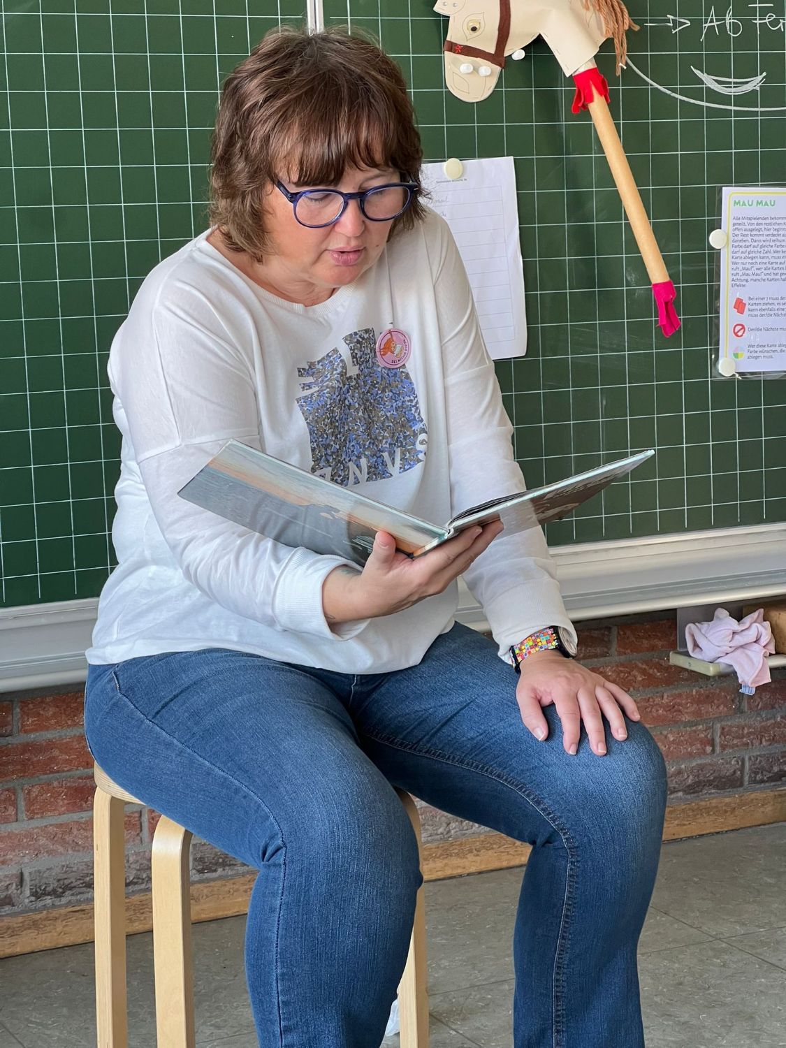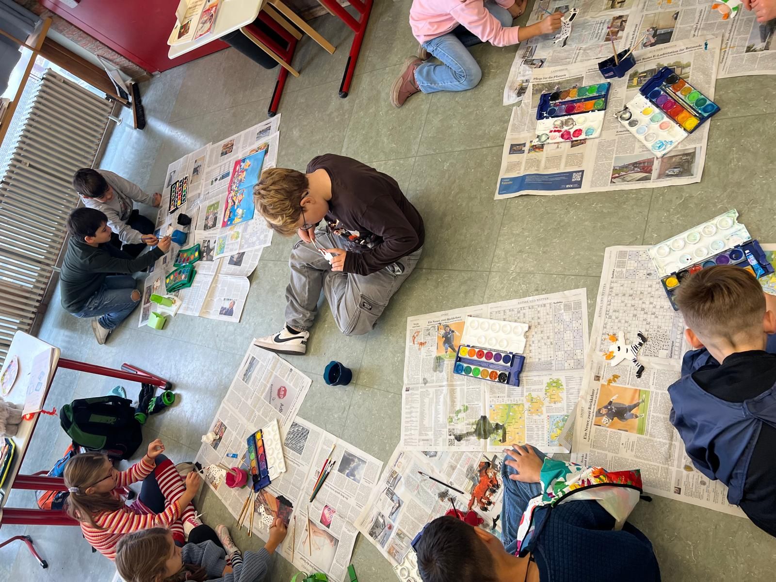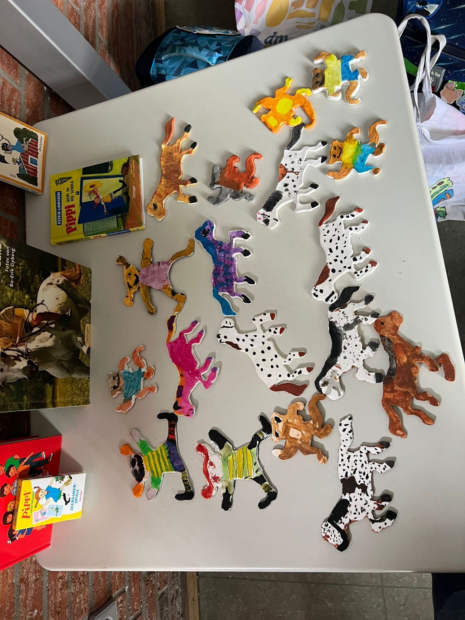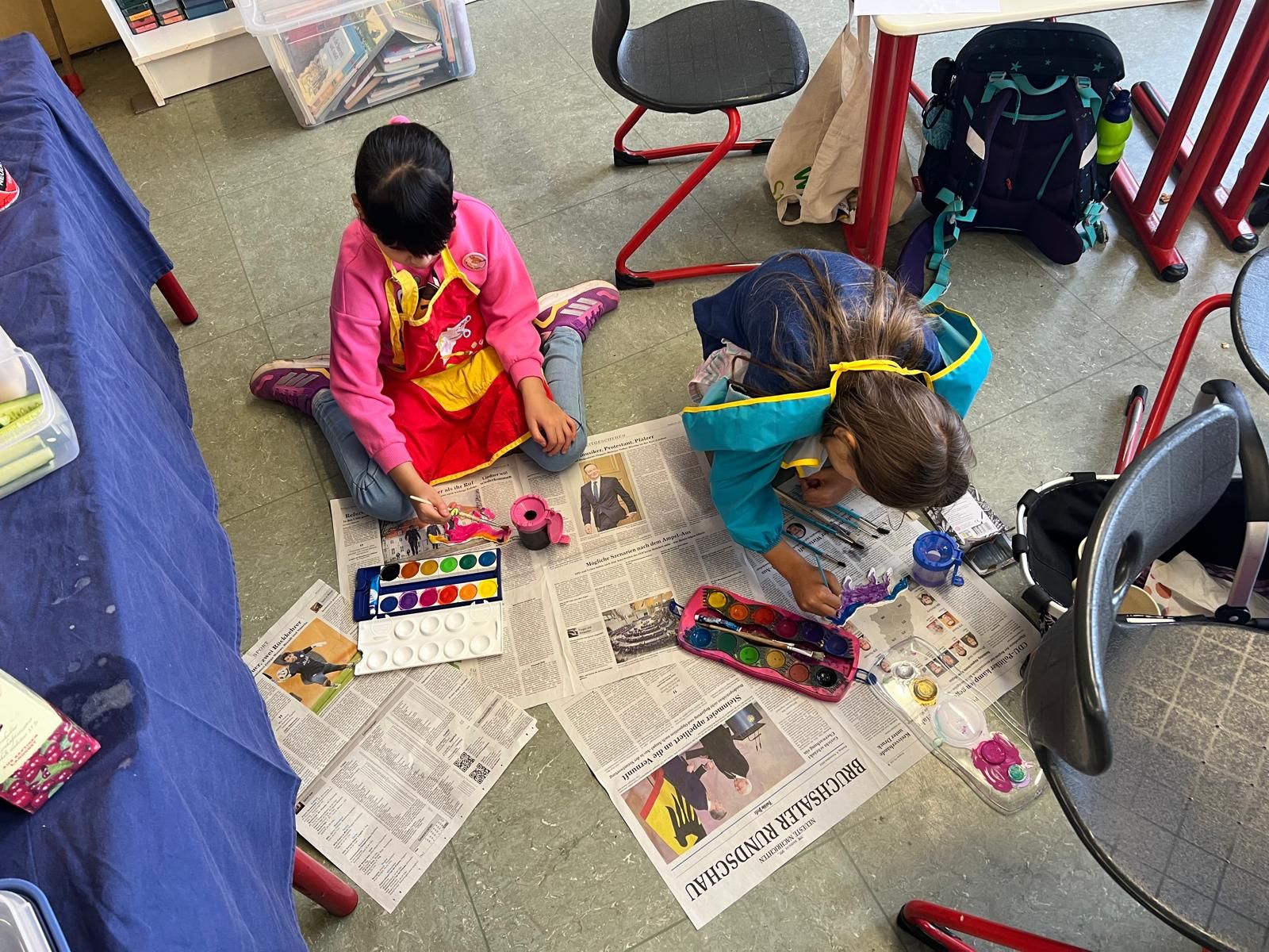 Das nahm sich die Klasse 3b der Erich Kästner-Grundschule zum Anlass, dieses Jubiläum im Rahmen der Frederick-Tage 2025 gebührend zu feiern. Neben dem gemeinsamen Lesen des Buches und Arbeiten im Begleitheft, wurden auch die Helden Pippi, Herr Nilsson oder Kleiner Onkel von den Kindern mit Fimo geformt und angemalt. Die Superheldin wurde als Löffelpuppe gebastelt und zwischendurch sangen die Kinder den mitreißenden Pippi Langstrumpf-Song immer wieder und tanzten dabei vergnügt. Mit dem Besuch der Lesepatin Frau Wipfler konnten wir so im Projekt auch unsere Ausrichtung als Leseschule unterstreichen. Auch der sportlich, gemeinschaftliche Pippi-Spaß kam nicht zu kurz. „Nicht den Boden berühren“ und als Team eine Strecke mit Matten zurücklegen, dass war lustig und anstrengend zugleich. Es bedurfte einiger Absprachen, um zum Ziel zu kommen.