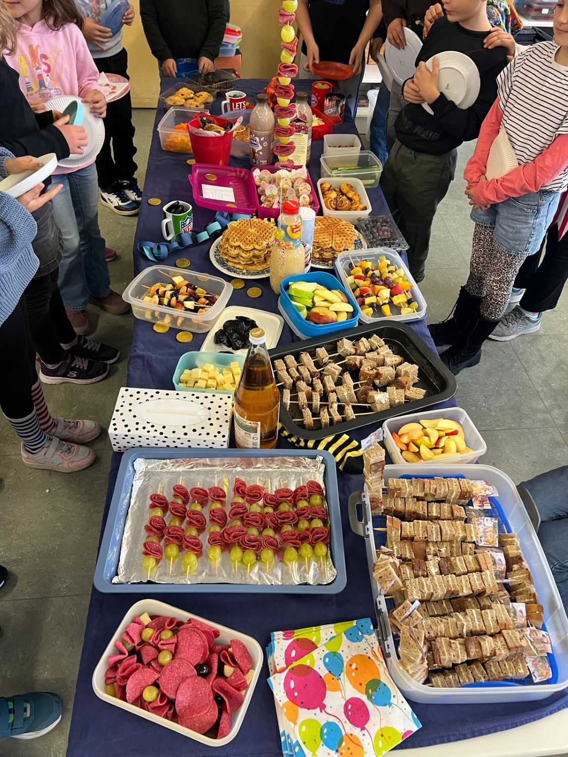 Abschluss dieser drei Tage bildeten ein superleckeres Pippi Langstrumpf-Buffet, mit aufgefädelten Wurstketten, Zimtschnecken Butterbrotspießchen …Und der Film „Pippi feiert Geburtstag“ ließ noch so manche süße Leckerei verschwinden.