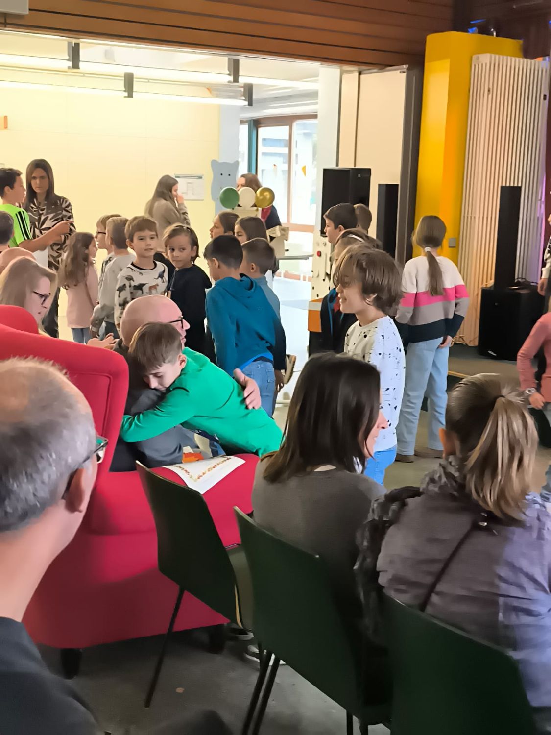 Mit einem lachenden und einem weinenden Auge verabschiedeten dich am 17.10.2025 in der Aula der Erich Kästner-Schule Herr Eheim, Frau Richter, Herr Fürniß sowie Herr Schirmer und Frau Megerle vom Förderverein. Mit einem kleinen, bunten Herbstprogramm und Liedern sorgten die Kinder der 3. und 4. Klassen, die dich noch als ihren geschätzten Hausmeister Jack kannten, für schöne Erinnerungen. Aber auch noch zahlreiche andere Kinder trugen mit Gedichten und kleinen Vorträgen zu deiner Verabschiedung bei.