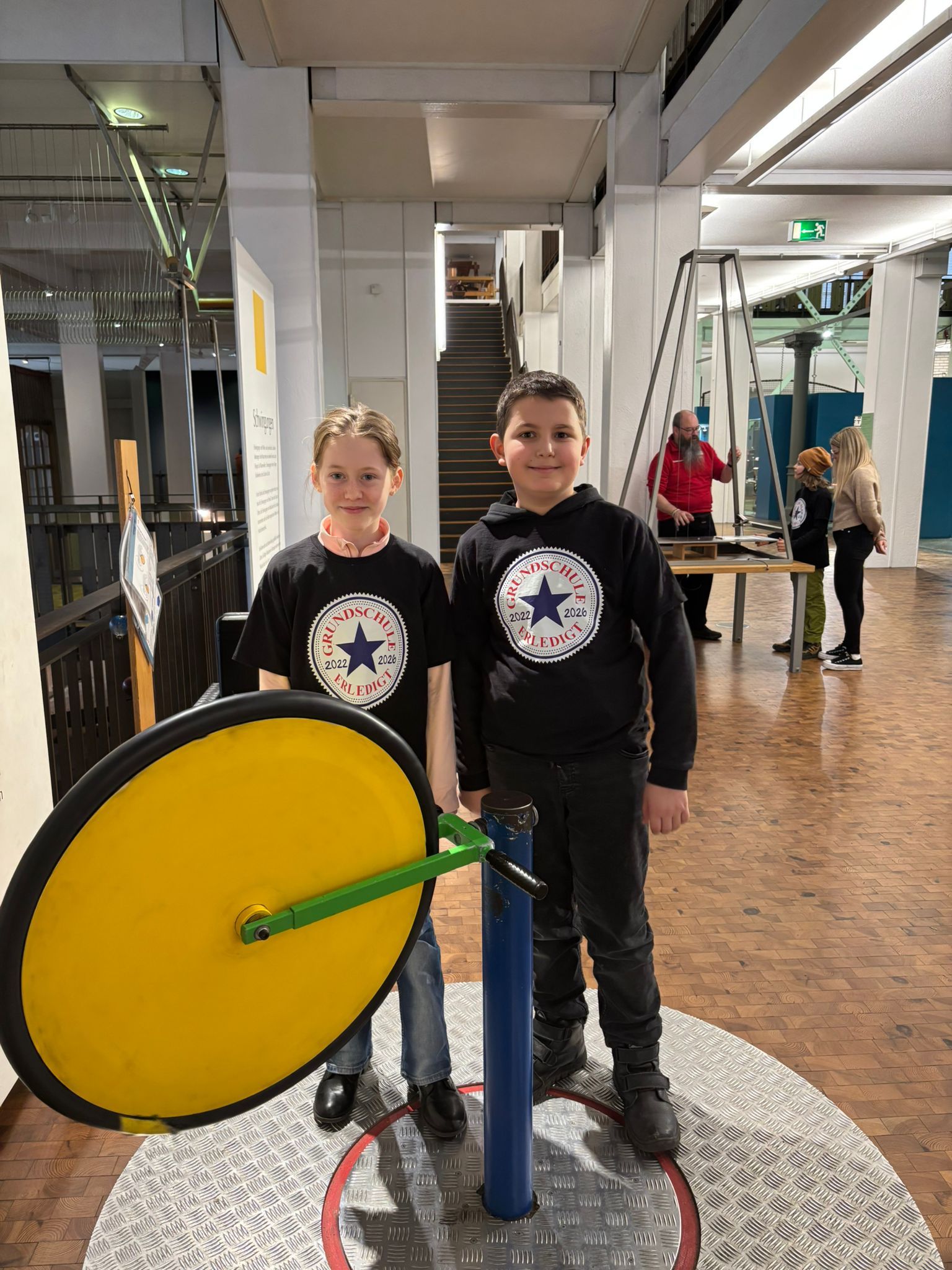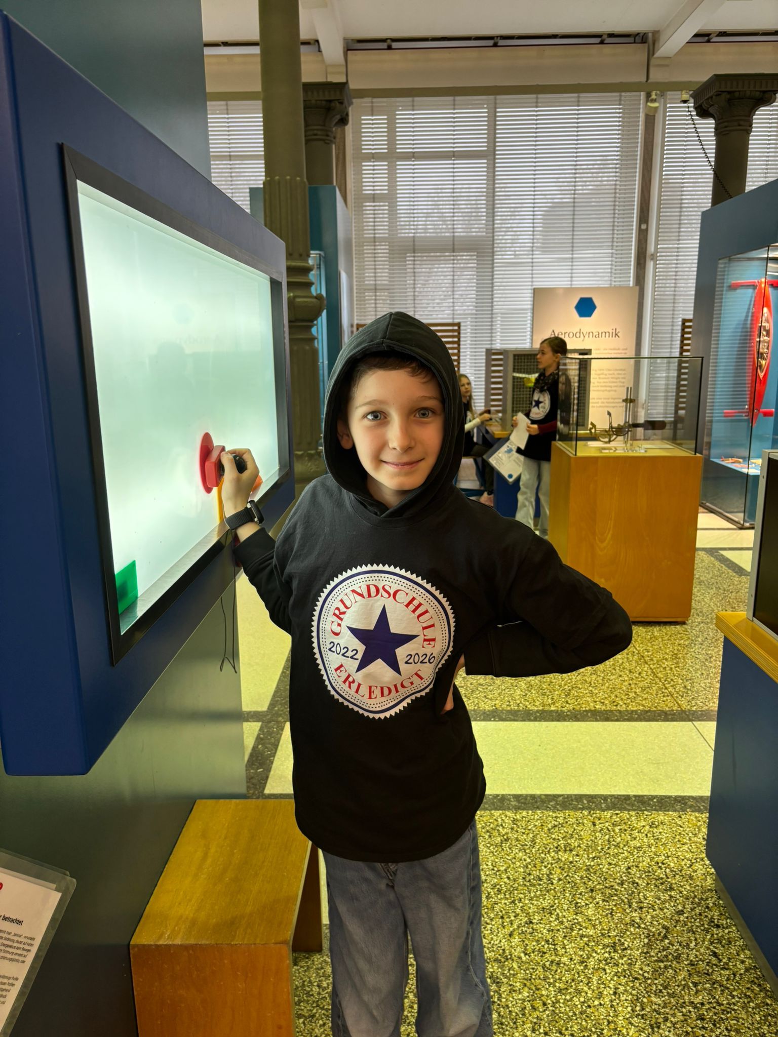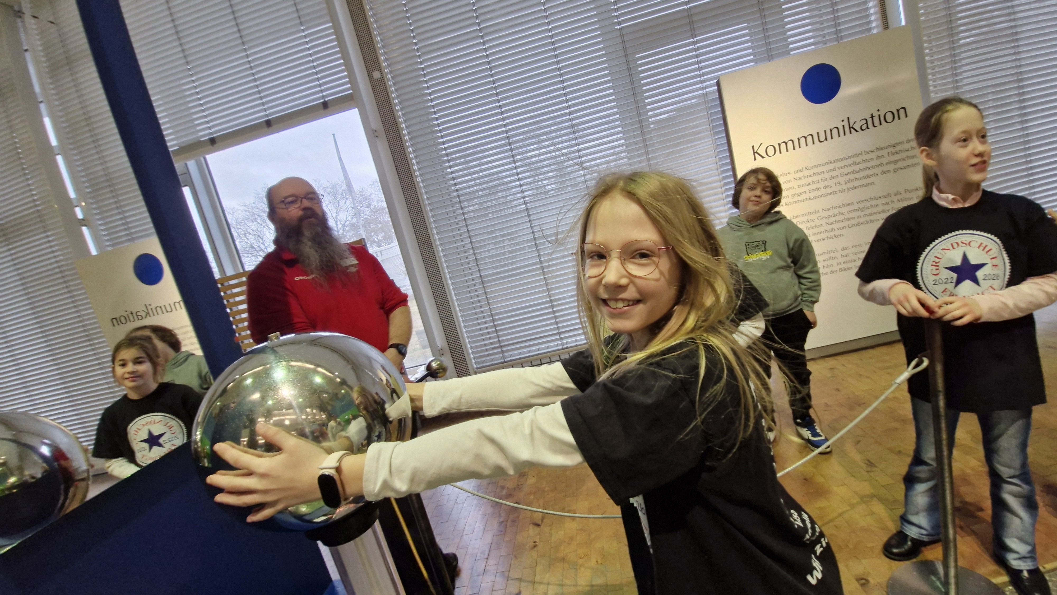 Am Mittwoch, den 11.02.26 traf sich die Klasse 4a schon ganz früh am Bahnhof Graben-Neudorf. Nach einer kurzen Verabschiedung von ihren Eltern bestiegen die Kinder den Zug und machten sich auf den Weg zum Technoseum Mannheim. Die meisten Kinder waren sehr erstaunt, wie riesig das Mitmach-Museum ist. Schnell teilten sich die Kinder in drei Gruppen begannen das Museum, von unterschiedlichen Ecken aus, zu erkunden.