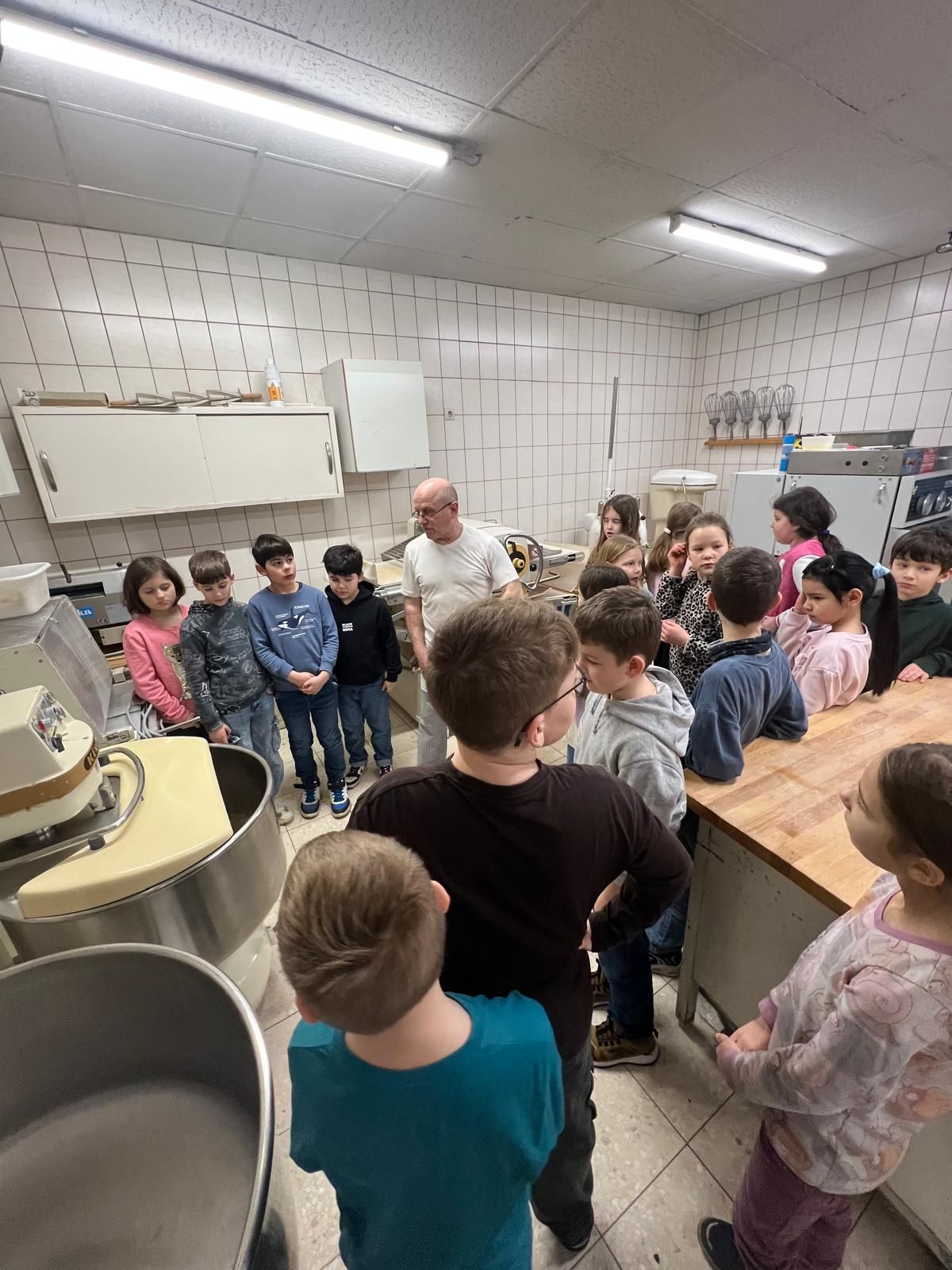 Am 24.02.2026 besuchte die Klassen 3b der Erich Kästner- Grundschule Neudorf mit ihrer Klassenlehrerin Frau Klauber und der Praktikantin Frau Machauer die Bäckerei Prestel. Dort sollten die Kinder einen Einblick in die Arbeit eines Bäckers erhalten.